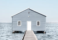 Blue Boat House - Art Print, Poster, Stretched Canvas or Framed Wall Art, Close up View of Print Resolution