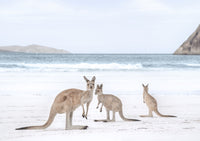 Coastal Beach Kangaroos II - Art Print, Poster, Stretched Canvas or Framed Wall Art, Showing White , Black, Natural Frame Colours, No Frame (Unframed) or Stretched Canvas, and With or Without White Borders