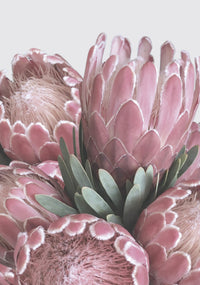 Queen Protea Stack - Art Print, Poster, Stretched Canvas or Framed Wall Art, Showing White , Black, Natural Frame Colours, No Frame (Unframed) or Stretched Canvas, and With or Without White Borders