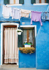 Bright Blue Terrace Washing Burano - Art Print by Victoria's Stories
