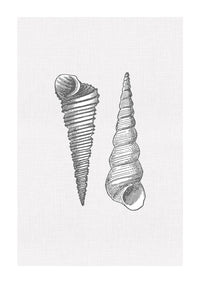 Sea Shells in Grey | Auger Shells - Art Print, Poster, Stretched Canvas or Framed Wall Art, Showing White , Black, Natural Frame Colours, No Frame (Unframed) or Stretched Canvas, and With or Without White Borders