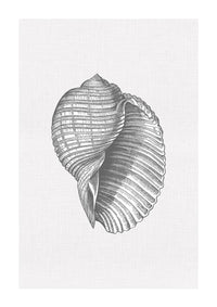 Sea Shells in Grey | Scotch Bonnet - Art Print, Poster, Stretched Canvas or Framed Wall Art, Showing White , Black, Natural Frame Colours, No Frame (Unframed) or Stretched Canvas, and With or Without White Borders