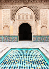 Azure Pool Marrakech - Art Print, Poster, Stretched Canvas or Framed Wall Art, Showing White , Black, Natural Frame Colours, No Frame (Unframed) or Stretched Canvas, and With or Without White Borders