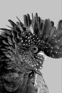 Black Cockatoo Pose in Black & White - Art Print, Poster, Stretched Canvas or Framed Wall Art, Close up View of Print Resolution
