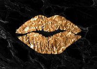 Solid Kiss Black Marble & Gold (faux look foil) - Art Print, Poster, Stretched Canvas or Framed Wall Art, Showing White , Black, Natural Frame Colours, No Frame (Unframed) or Stretched Canvas, and With or Without White Borders