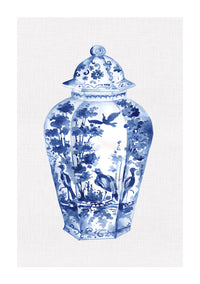 Chinoiserie Ginger Jar on Linen V - Art Print, Poster, Stretched Canvas or Framed Wall Art, Showing White , Black, Natural Frame Colours, No Frame (Unframed) or Stretched Canvas, and With or Without White Borders