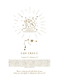 Aquarius Star Sign | Celestial Boho (faux look foil) - Art Print