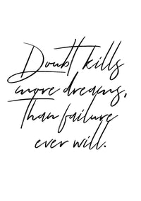 Doubt Kills More Dreams, than Failure Ever Will V2 - Art Print, Poster, Stretched Canvas or Framed Wall Art, Showing White , Black, Natural Frame Colours, No Frame (Unframed) or Stretched Canvas, and With or Without White Borders