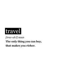 Travel Definition - Art Print, Poster, Stretched Canvas or Framed Wall Art, Showing White , Black, Natural Frame Colours, No Frame (Unframed) or Stretched Canvas, and With or Without White Borders