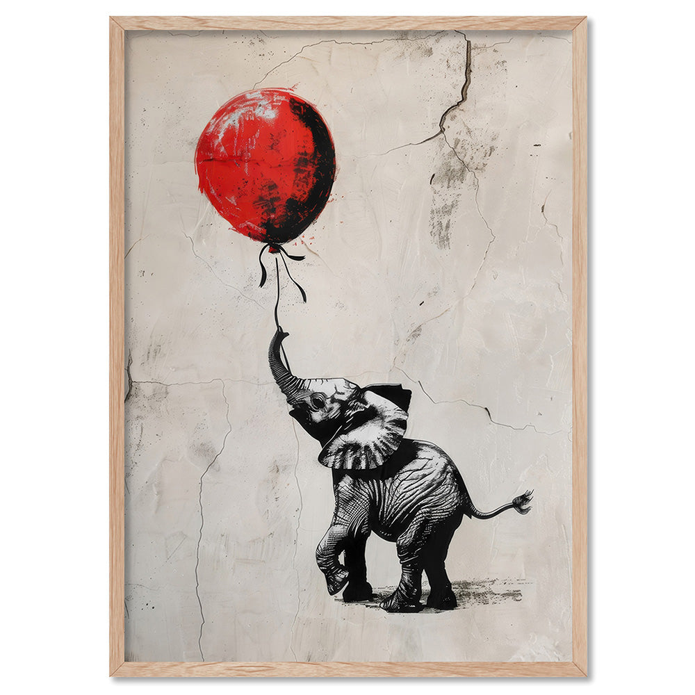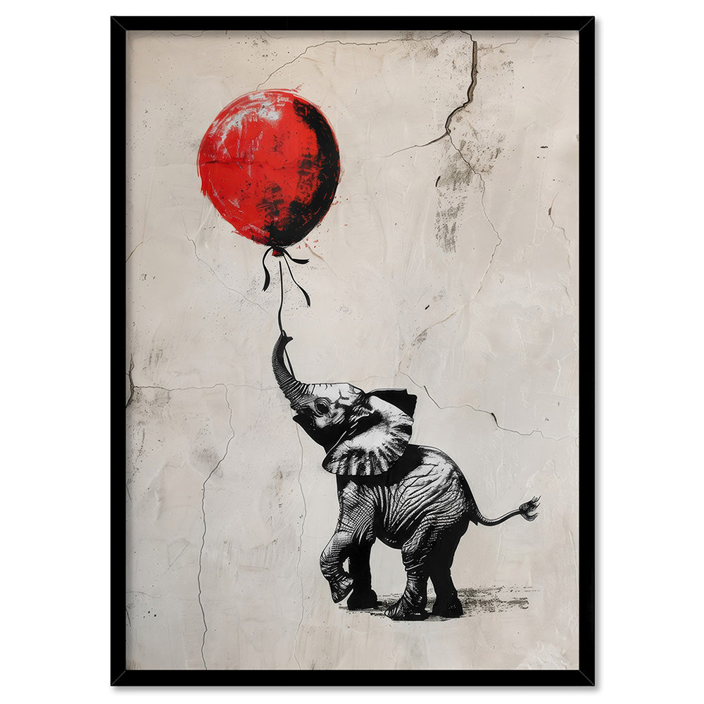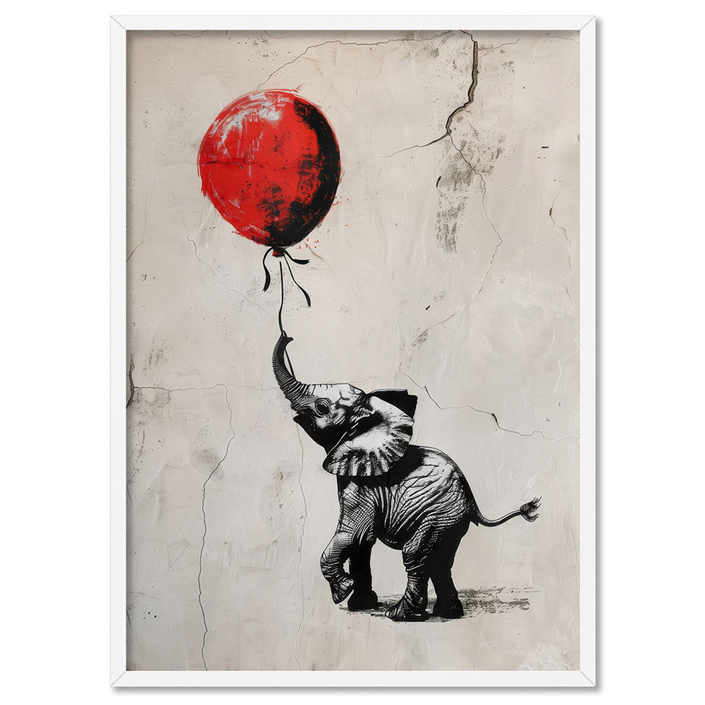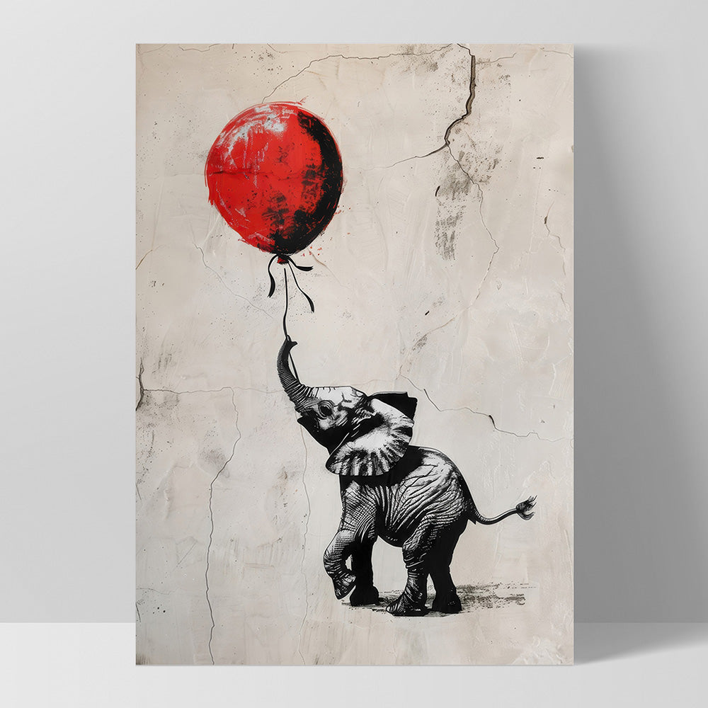 Elephant with Red Balloon - Art Print