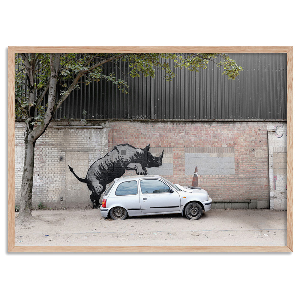 Rhino - Art Print, Poster, Stretched Canvas, or Framed Wall Art Print, shown in a natural timber frame