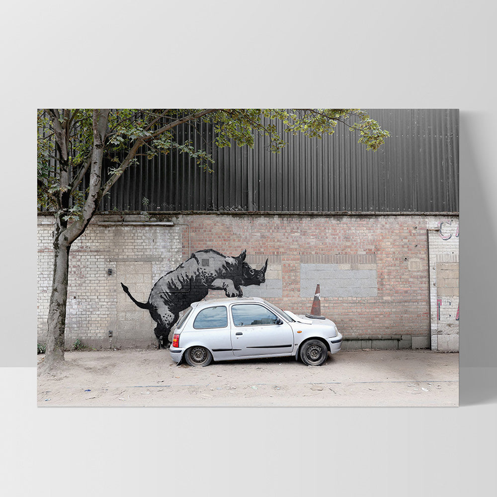 Rhino - Art Print, Poster, Stretched Canvas, or Framed Wall Art Print, shown as a stretched canvas or poster without a frame