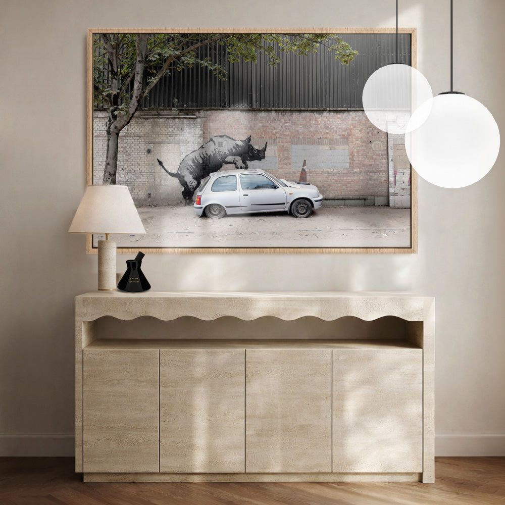 Rhino - Art Print, Poster, Stretched Canvas or Framed Wall Art Prints, shown framed in a room
