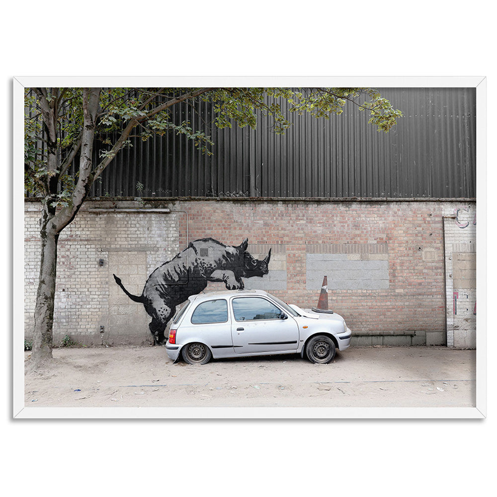 Rhino - Art Print, Poster, Stretched Canvas, or Framed Wall Art Print, shown in a white frame
