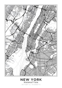 City Map | NEW YORK - Art Print, Poster, Stretched Canvas or Framed Wall Art, Showing White , Black, Natural Frame Colours, No Frame (Unframed) or Stretched Canvas, and With or Without White Borders
