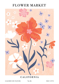 Flower Market | California - Art Print, Poster, Stretched Canvas or Framed Wall Art, Showing White , Black, Natural Frame Colours, No Frame (Unframed) or Stretched Canvas, and With or Without White Borders
