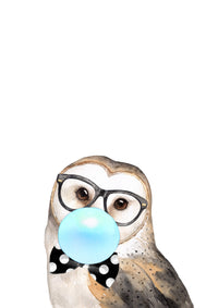 Bubblegum Wise Owl | Blue Bubble - Art Print