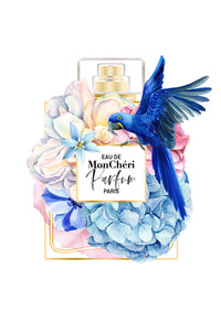 Floral Perfume Bottle | Blue Parrot - Art Print