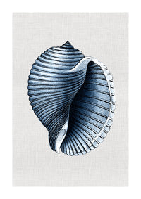 Sea Shells in Navy | Scotch Bonnet - Art Print, Poster, Stretched Canvas or Framed Wall Art, Showing White , Black, Natural Frame Colours, No Frame (Unframed) or Stretched Canvas, and With or Without White Borders